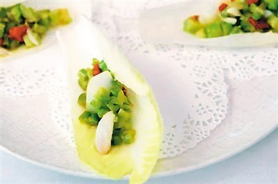 4. 一片玉兰菜洗净,作为底托,方便食用。