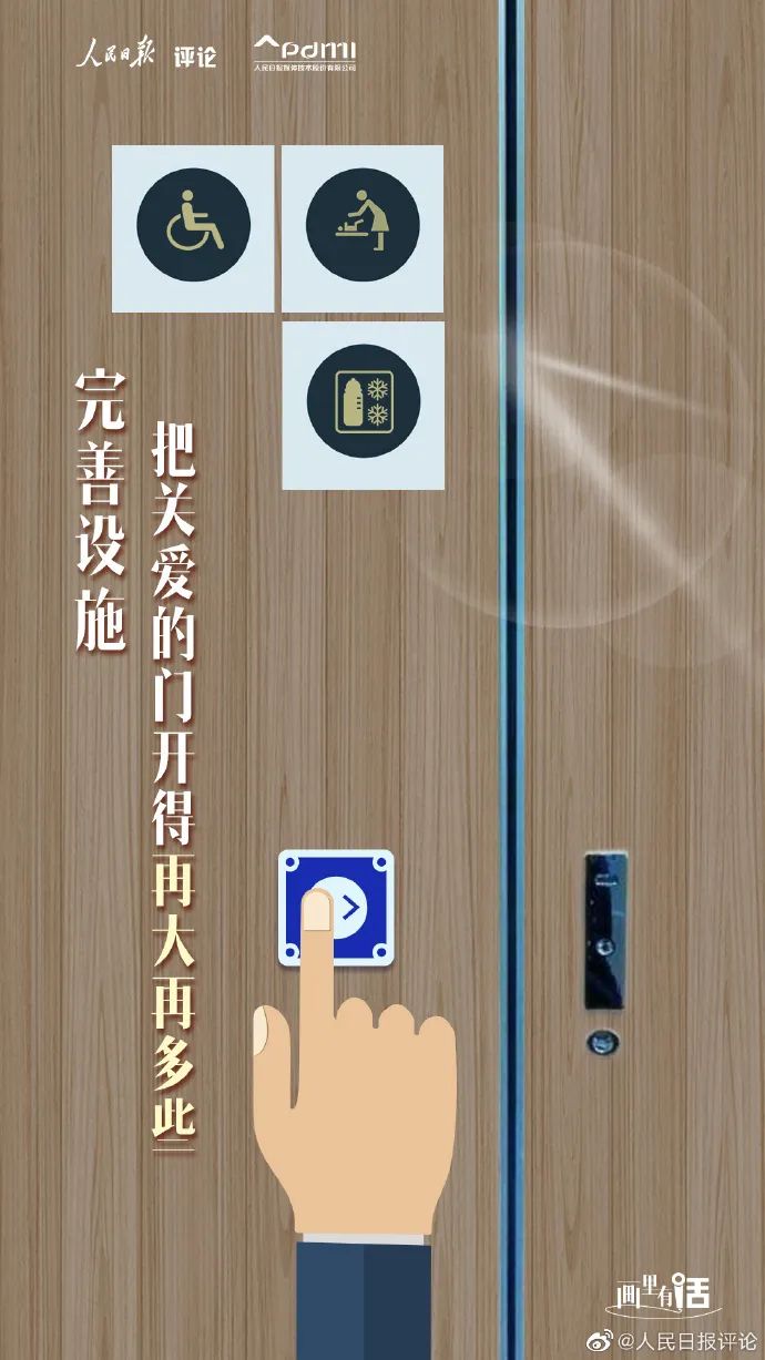 近日,一女子发视频称高铁乘务员拒绝为其冷藏母乳,质疑高铁服务。有律师回应:高铁没有此项法律义务,同时考虑到食品卫生和安全问题,乘务员的行为没有错。相关的讨论让公共空间的母婴设施成为焦点,毕竟高铁上的母乳喂养,的确不仅仅是这位女子的个人需求。近些年,故宫博物院首次开设母婴护理室,《广州市母乳喂养促进条例》规定每日客流量过万的公共场所不设母婴室将被罚款……公共空间的母婴设施配备取得了看得见的进步。从不占用盲道,到普及无障碍设施,再到给哺乳期妈妈和孩子更多贴心服务,对弱势群体的关爱和人文关怀,是社会文明程度提升的题中之义。因此,在考虑到资源配备效率和公平的前提下,不妨在公共空间增加更多人性化设施,把关爱的门开得再大、再多些。
