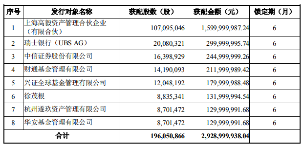 万达电影此次定增共向111名投资机构和个人发送认购邀约,发行对象最终确定为8名,其获配金额接近29.29亿元,锁定期为6个月。