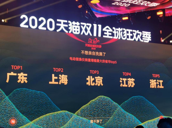 比如,今年“双11”期间,电动搓澡仪销量增幅排名前五位的省市分别为:广东、上海、北京、江苏、浙江。