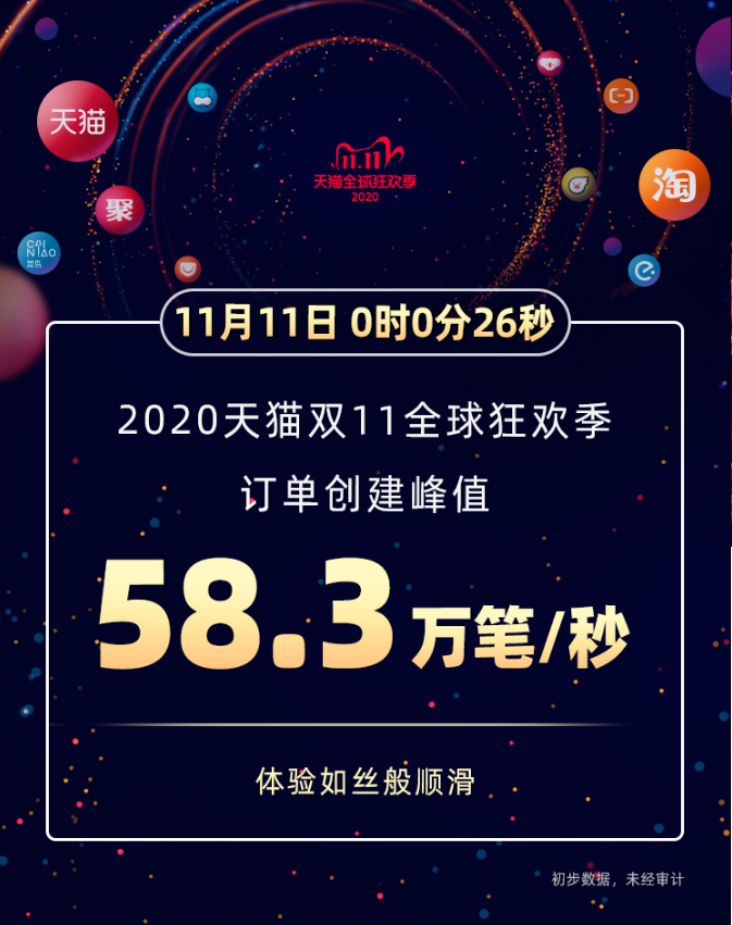 (小标题)流量洪峰每秒订单58.3万笔 创3723亿元销售额