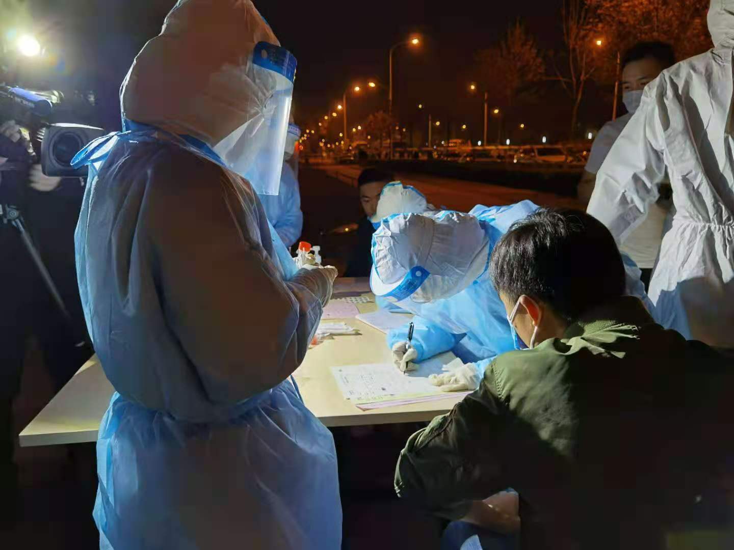 在现场,记者见到了北大医疗海洋石油医院ICU护士长云会先,她曾经支援湖北省鄂州市,当时便已经连续工作了近8个小时。她告诉记者,11月10日上午十点半左右,医院接到了滨海新区卫生健康委的相关通知,医院迅速组建了一支由30人组成的队伍,随时待命,准备出发。在接到通知后许多护士就开始加紧练习穿脱防护服,并于12点半左右出发,到达小区待命。下午两点左右她和同事们穿上防护服,和公安干警、抽调的干部、居委会工作人员一起,分组在每栋居民楼前进行咽拭子采样。居民们都非常配合,有序排队。“我曾经支援鄂州,现在疫情就发生在自己的身边,更是义不容辞。”她说。