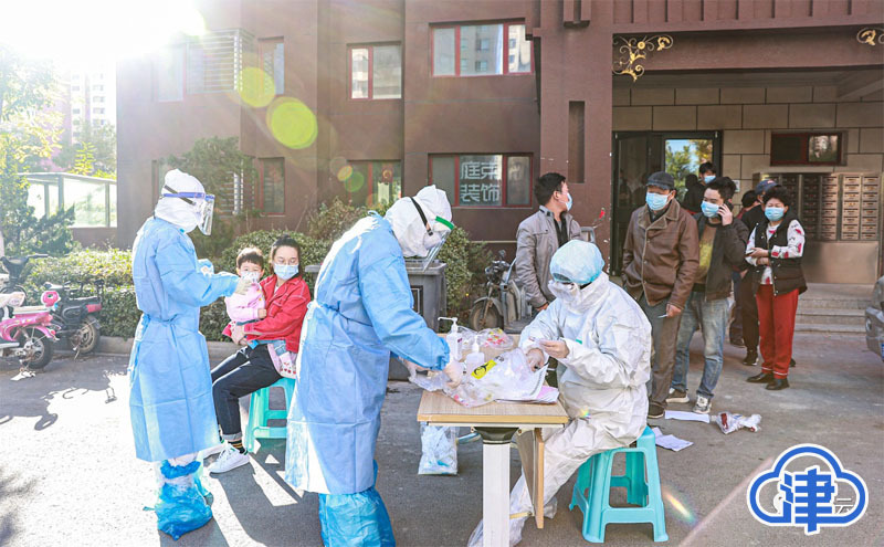 据了解,从11月7日开始,滨海新区中新生态城紧急征调了社区卫生服务中心、属地医院的人员,对密接、次密接人员进行流调,对物表、环境进行采样。