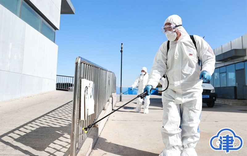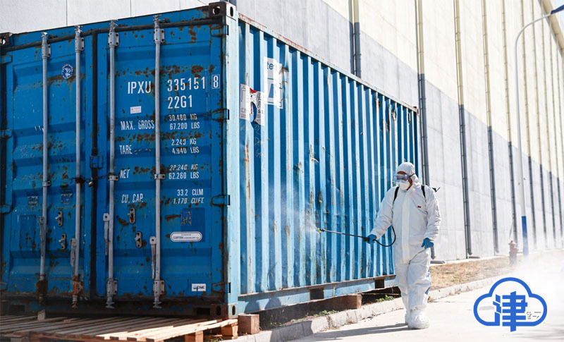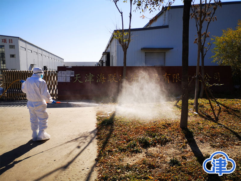 天津海联冷冻食品有限公司出现确诊病例后,天津津生环境科技有限公司运营部部长杨永健就第一时间组织消杀力量,对企业外环境和办公楼进行消杀,确保了第一时间把病毒控制在有限范围之内。9日,他们又对其他6家冷链物流企业进行预防性消杀,目前6家企业的消杀工作全部完毕。