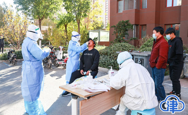 “战令”一出,滨海新区疫情防控工作人员就分成多个工作组,对汉沽街实际居住人员进行核酸检测。滨海新区中医医院医务科长鹿繁修告诉记者,他们医院紧急抽调了45名参加过核酸检测培训的医护人员进驻汉沽街滨河家园社区。