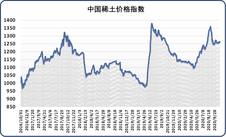 新华财经北京11月11日电(刘星麟)11月11日,中国稀土价格指数报1263.72点,较前一工作日上涨3.67点,涨幅为0.29%。氧化镨钕报价偏强延续,下游企业谨慎采购,部分分离企业惜售,市场现货偏紧,对价格形成支撑。