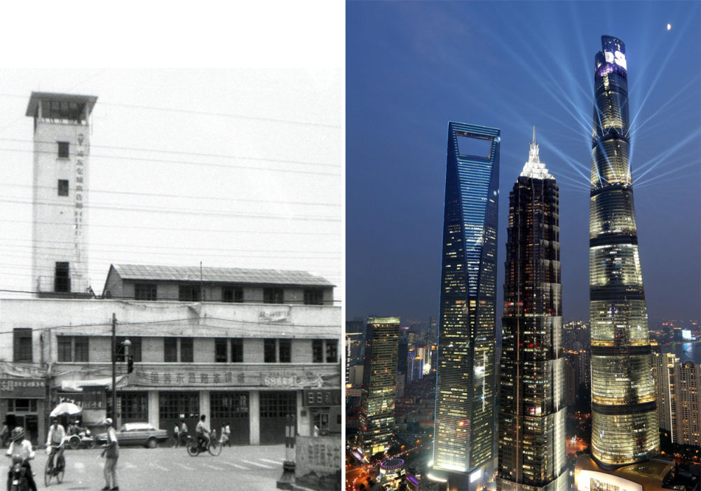 “烂泥渡路”今昔对比。陆家嘴金融城核心区的银城路当年叫“烂泥渡路”。此地曾因积水而泥泞,常常弄脏行人的衣裤。