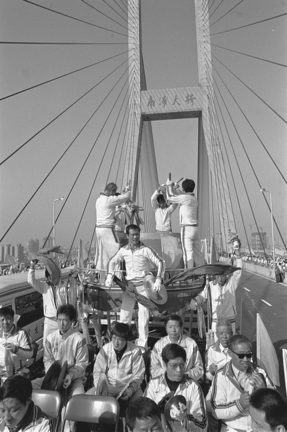 1991年,市民欢庆市区的“浦江第一桥”——南浦大桥建成通车。