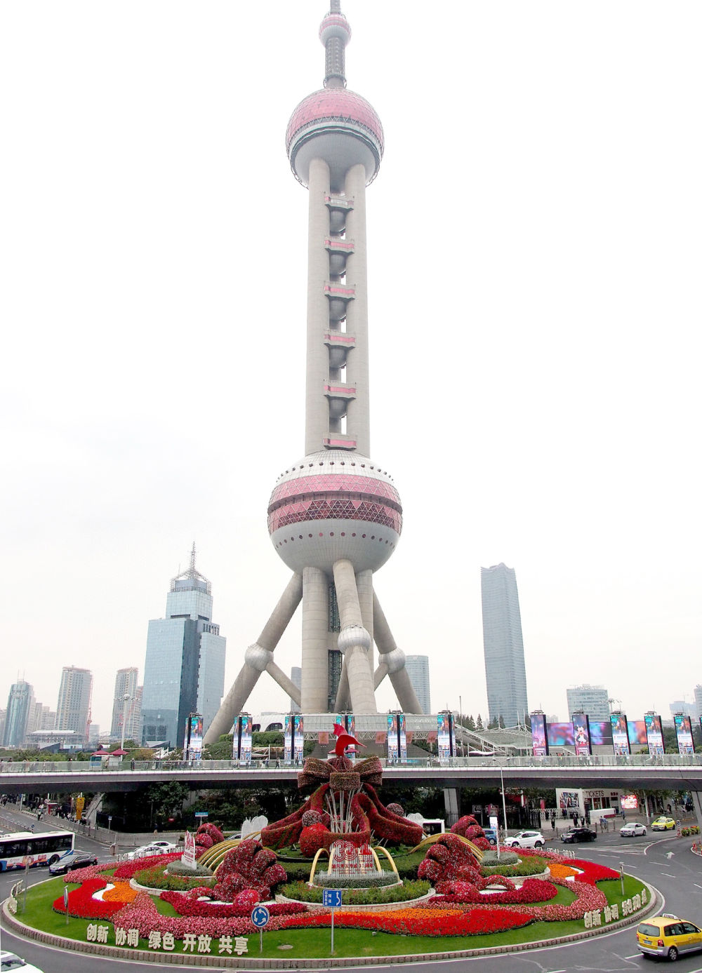 陆家嘴环岛中央的“浦东开发开放30周年”大型立体花坛。