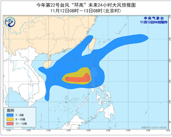 中央气象台11月12日06时继续发布台风蓝色预警: