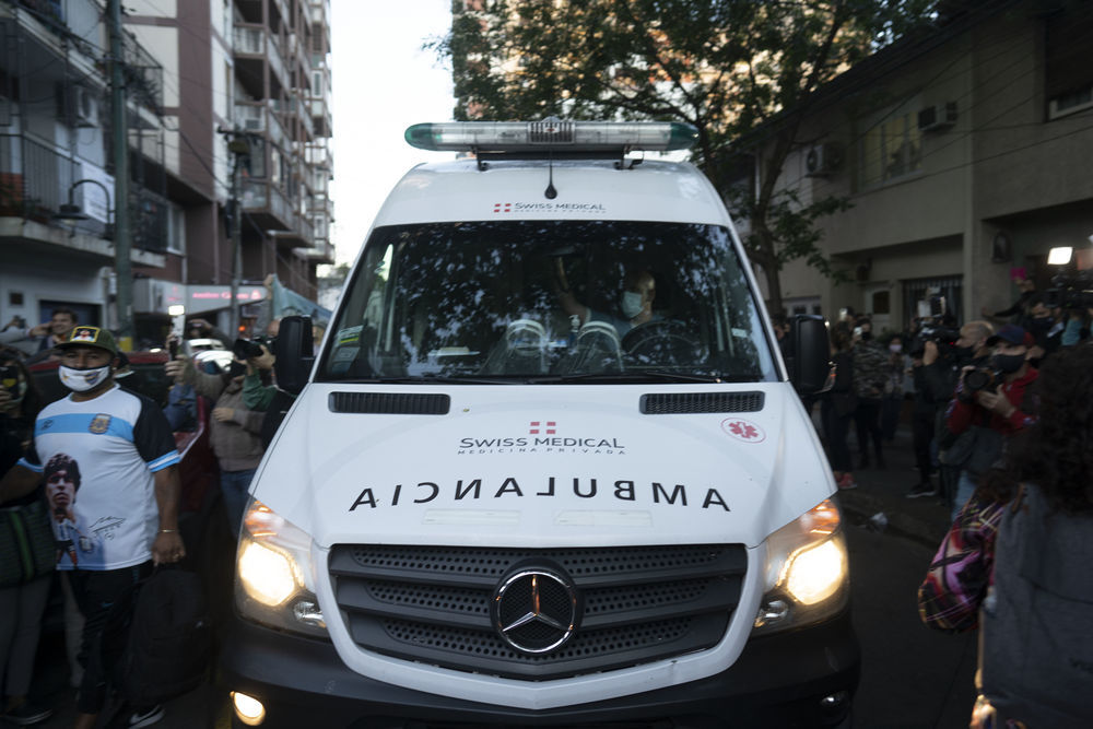 11月3日,一辆救护车将马拉多纳运送至布宜诺斯艾利斯省维森特·洛佩斯的一家诊所。新华社