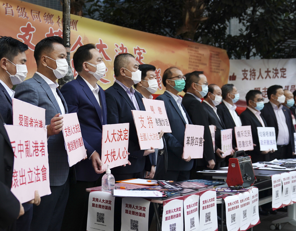 在新冠肺炎疫情下,主办方各代表戴上口罩,手持写有“支持全国人大决定”“垃圾唔清除 政府难施政”“谴责‘揽炒派’恶意拉布”等字句的标语,轮流发言表达对全国人大常委会决定的支持,以及对香港未来的期望。随后,各代表分批在签名册上签字,为签名行动揭开序幕。
