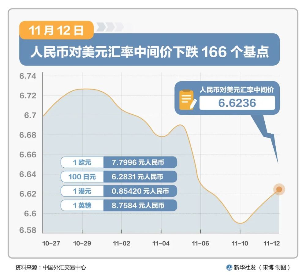 12日人民币对美元汇率中间价报6.6236,较前一交易日下行166个基点。