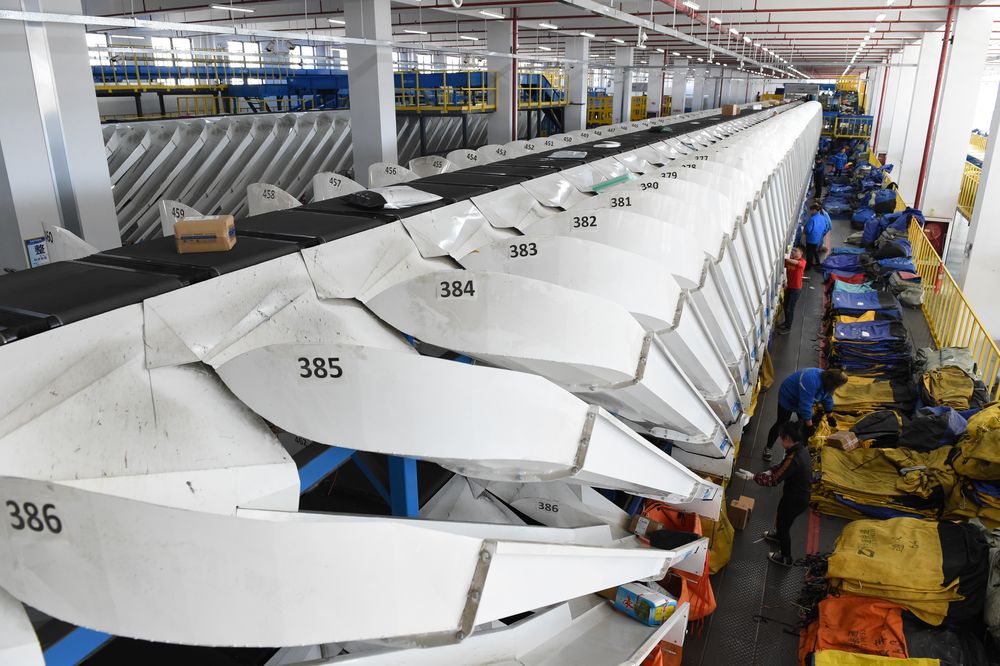 这是11月10日在贵州省龙里县中通公司厂区拍摄的快递分拣系统。新华社记者 戴天放 摄