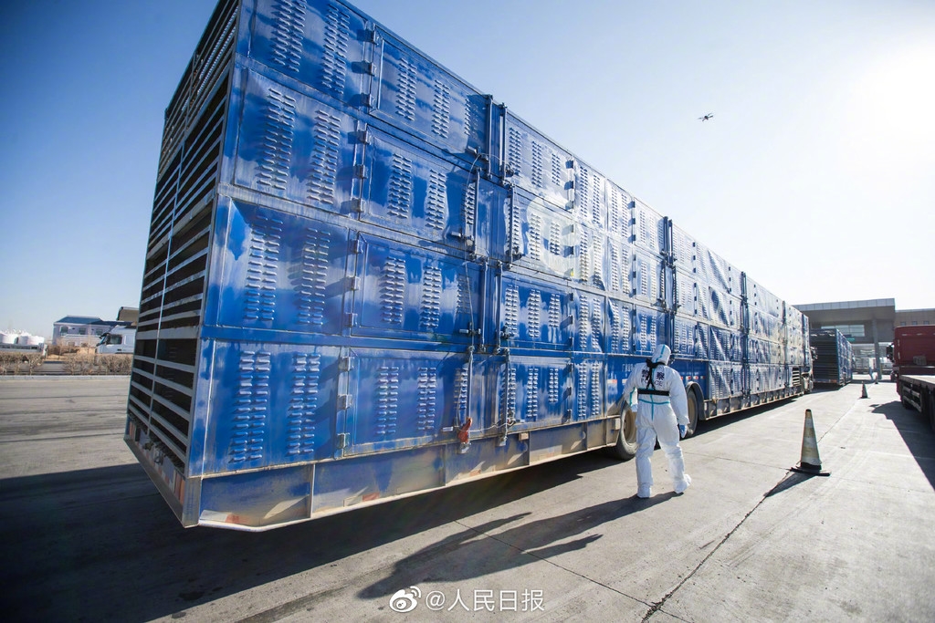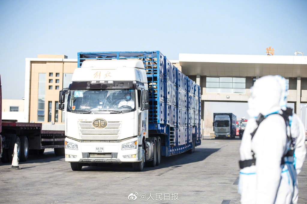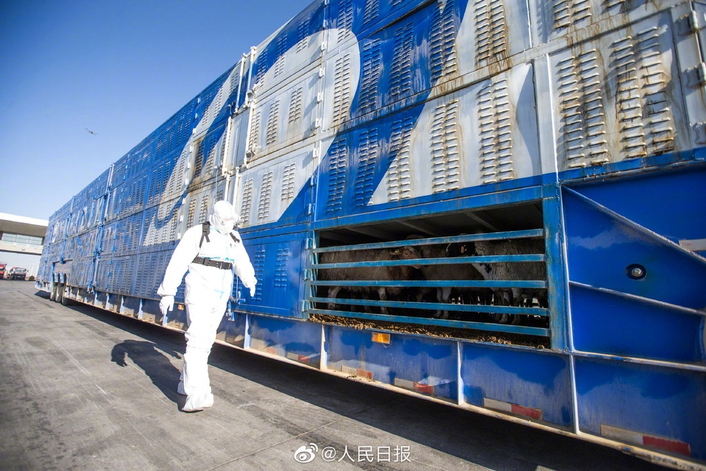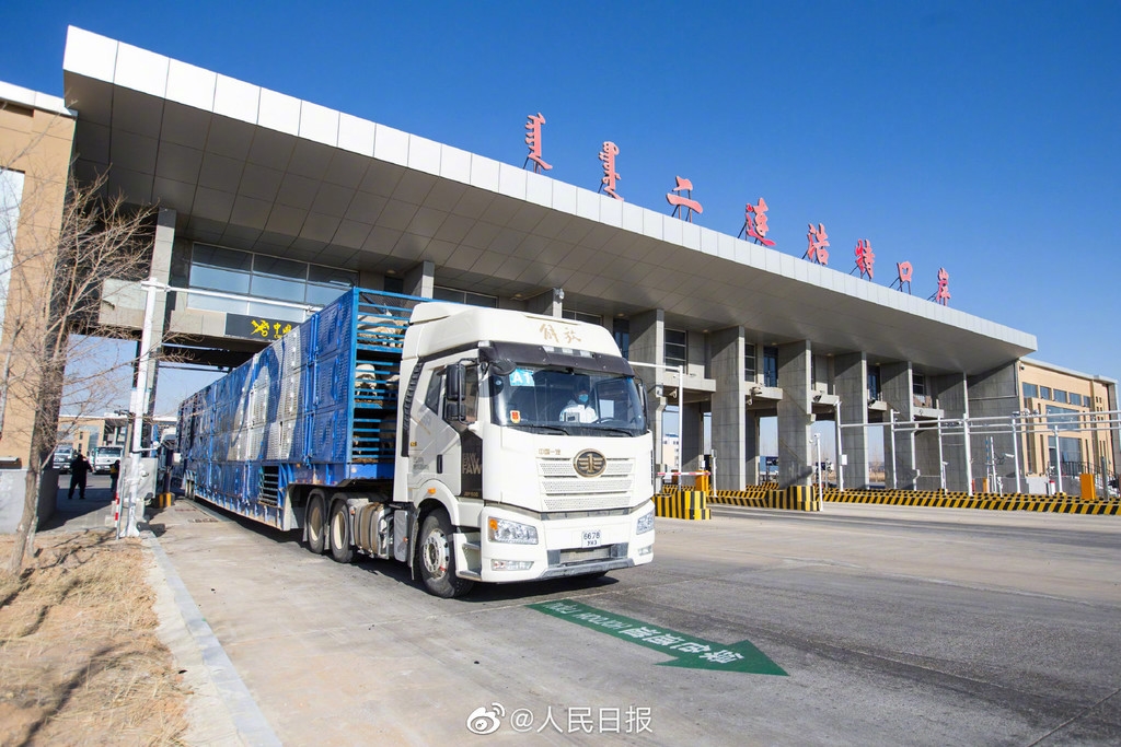 11月13日上午,内蒙古出入境边防检查总站二连出入境边防检查站为载运最后一批1800只蒙古国捐赠羊的2辆货车办理完通关手续,标志着历时23天、共14批次的#蒙古国3万只捐赠羊全部入境#。(人民日报记者张枨)