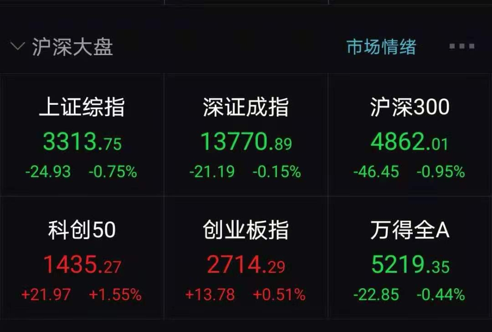 新华社北京11月13日电(中国证券报记者林倩)11月13日上午,A股三大指数盘中震荡。截至午间收盘,上证指数下跌0.75%,深证成指下跌0.15%,创业板指上涨0.51%。Wind数据显示,两市半日成交额超4500亿元,北向资金半日净流出43.55亿元。
