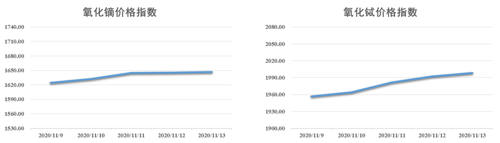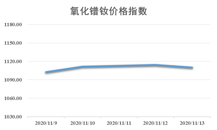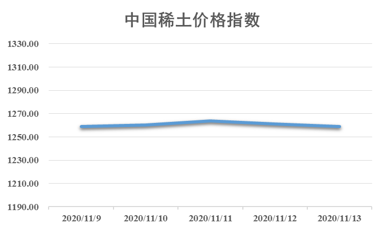 新华财经北京11月13日电(刘星麟)本周稀土市场整体持稳,氧化镨钕报价窄幅波动,镝铽氧化物价格走势偏强,中国稀土价格指数稳中有升,截至11月13日,中国稀土价格指数报1258.74点,较上周五(11月6日)上涨4.68点,涨幅0.37%。