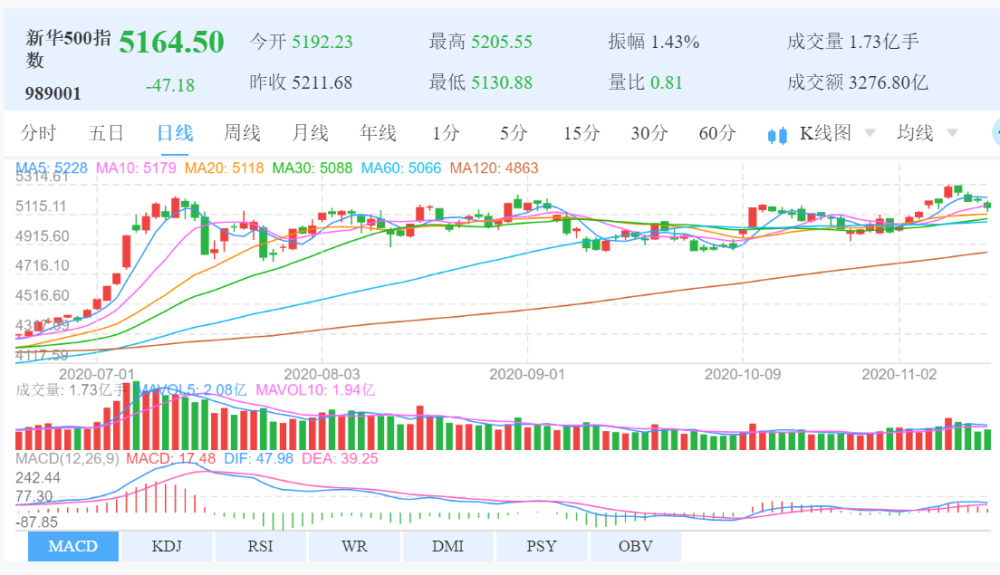 图为新华500指数(989001)日K线图