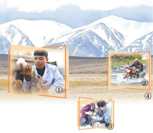 图①:解安程在给小藏羚羊喂奶。