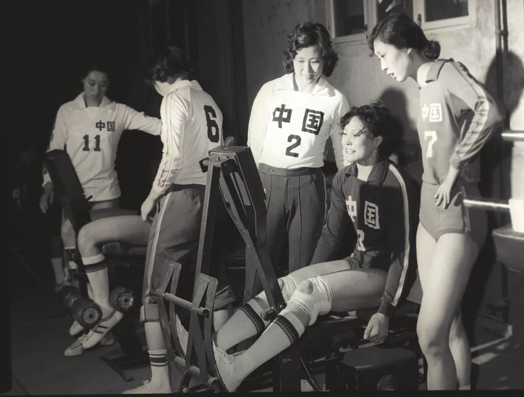 △1982年,女排队员在进行身体素质训练。