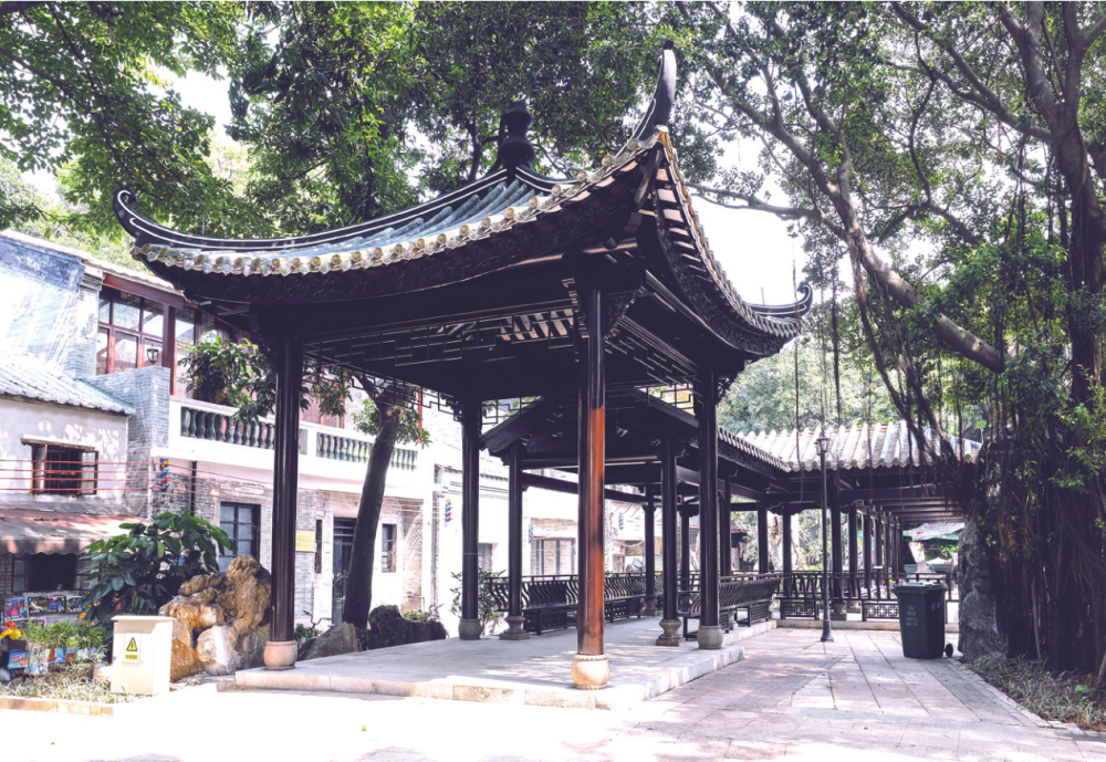 广州市荔湾区泮塘五约社区微改造后的公共空间休息亭(陈志强/摄)