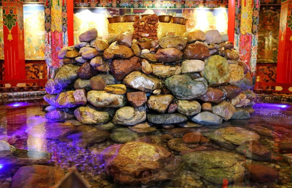 进入略显神秘的建筑内,水源口在石头包围的中央静静涌动,建造这里的西藏纳木措实业有限公司(下称“纳木措公司”)总经理江村介绍,这是冷泉水,地下打井290米左右,然后引流到生产车间进行水处理及后续步骤,最终成为我们喝到的“西藏好水”。