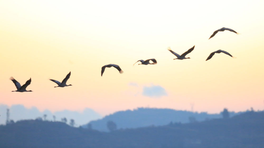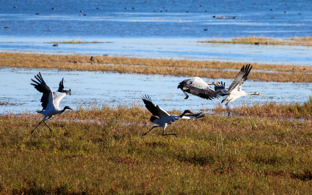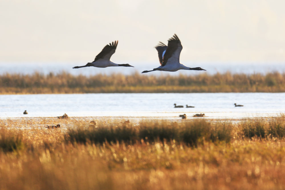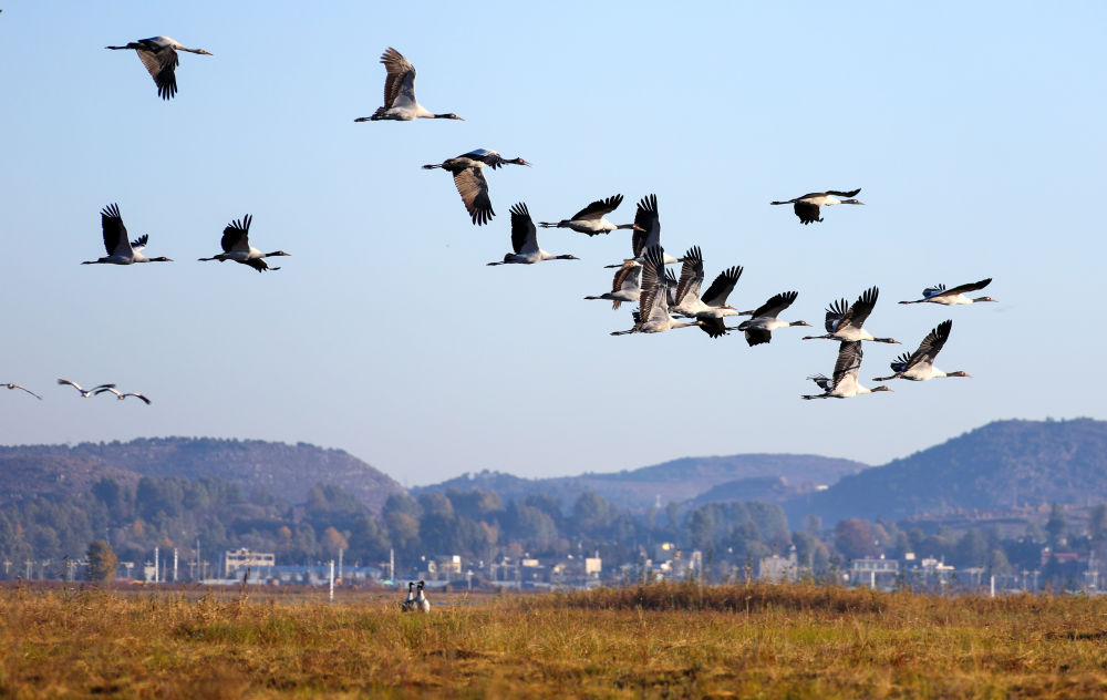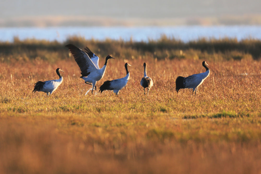 连日来,位于贵州省毕节市威宁彝族回族苗族自治县的草海国家级自然保护区陆续迎来黑颈鹤等越冬候鸟。图为11月16日在贵州草海国家级自然保护区拍摄的黑颈鹤。