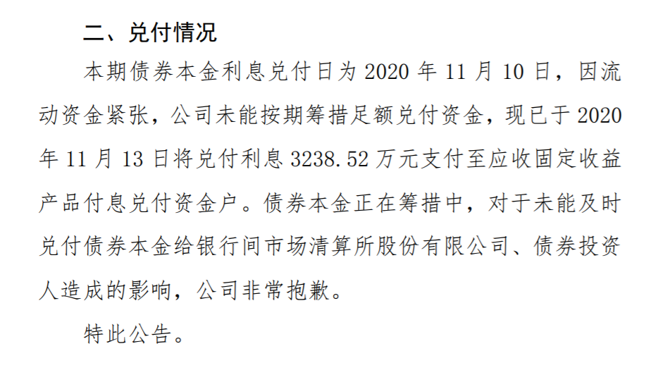 在交易商协会宣布启动自律调查、接近监管部门人士表示对“逃废债”零容忍之后,备受舆论质疑的永煤控股于13日披露,已将“20永煤SCP003”付息资金支付至应收固定收益产品付息兑付资金户。
