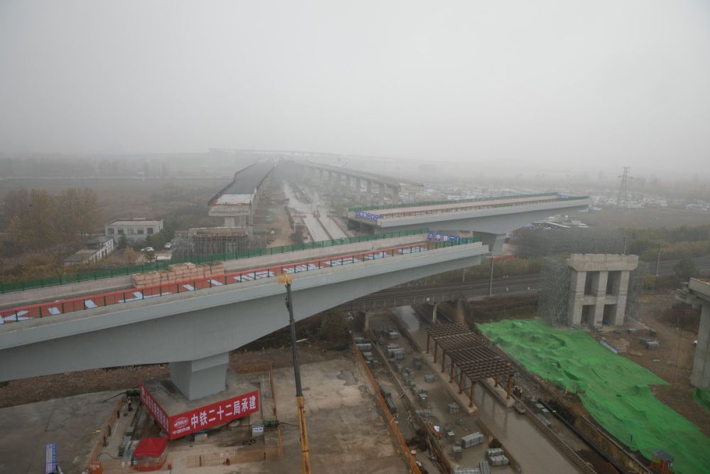 新华社北京11月17日电(记者齐中熙)记者从中国铁建股份有限公司获悉,17日,由中铁二十二局集团四公司负责施工的山东济宁市内环高架桥东、西两座合计重达2.6万吨转体桥成功转体,跨越新兖铁路,标志着我国首条一次建成的城市内环高架桥快速路贯通。