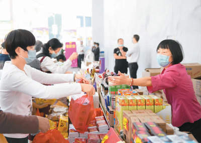 图为11月11日,居民在广州市首届城市购物节线下实体店购买商品。新华社记者 卢汉欣摄