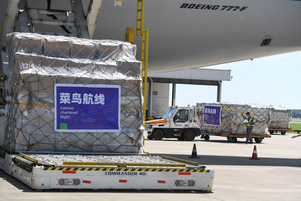 8月13日,中国国际货运航空公司、浙江机场集团联合菜鸟在萧山国际机场开通了浙江省首条去往西班牙马德里的全货运航线,并将保持一周三班的飞行频次。新华社记者 黄宗治 摄