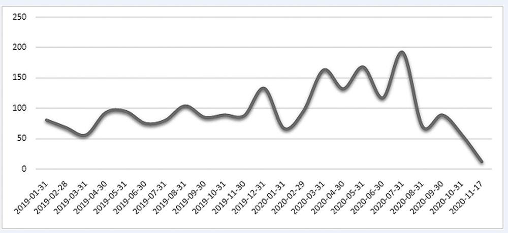此外,以认购起始日为标准,基金发行也在7月底到达高峰后开始逐步“退烧”。同花顺数据显示,7月内发行基金总数达到192只,在接下来的8月、9月和10月,这一数据分别降至70只、89只和56只,10月新发基金数相比7月缩水近71%。截至目前,11月份新发基金数量仅为12只,或创下2020年月度发行数目的新低。(完)