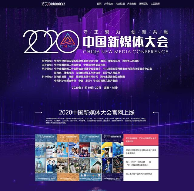 2020中国新媒体大会将于11月19日在湖南长沙启幕。11月17日,本次活动官网(http://cnmc.zgjx.cn/)正式上线。