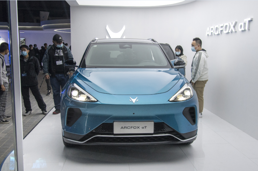 ▲2020年10月24日,北汽高端品牌ARCFOX极狐首款量产车αT上市实拍。图/视觉中国