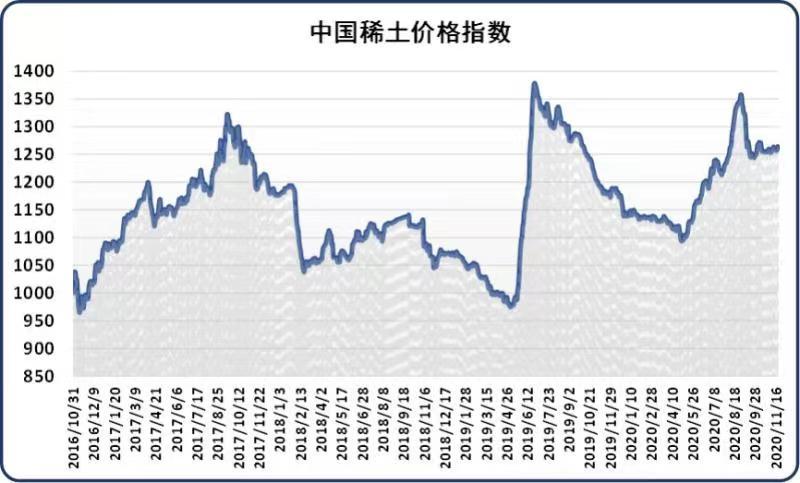 新华财经北京11月19日电(刘星麟)19日,中国稀土价格指数报1264.30点,较前一工作日上涨6.46点,涨幅为0.51%。氧化镨钕价格持续上调,上游厂商惜售挺价,下游企业谨慎观望,上下游博弈局面仍存,整体成交量较少。