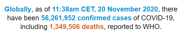 世卫组织:全球新冠肺炎确诊病例超5626万例