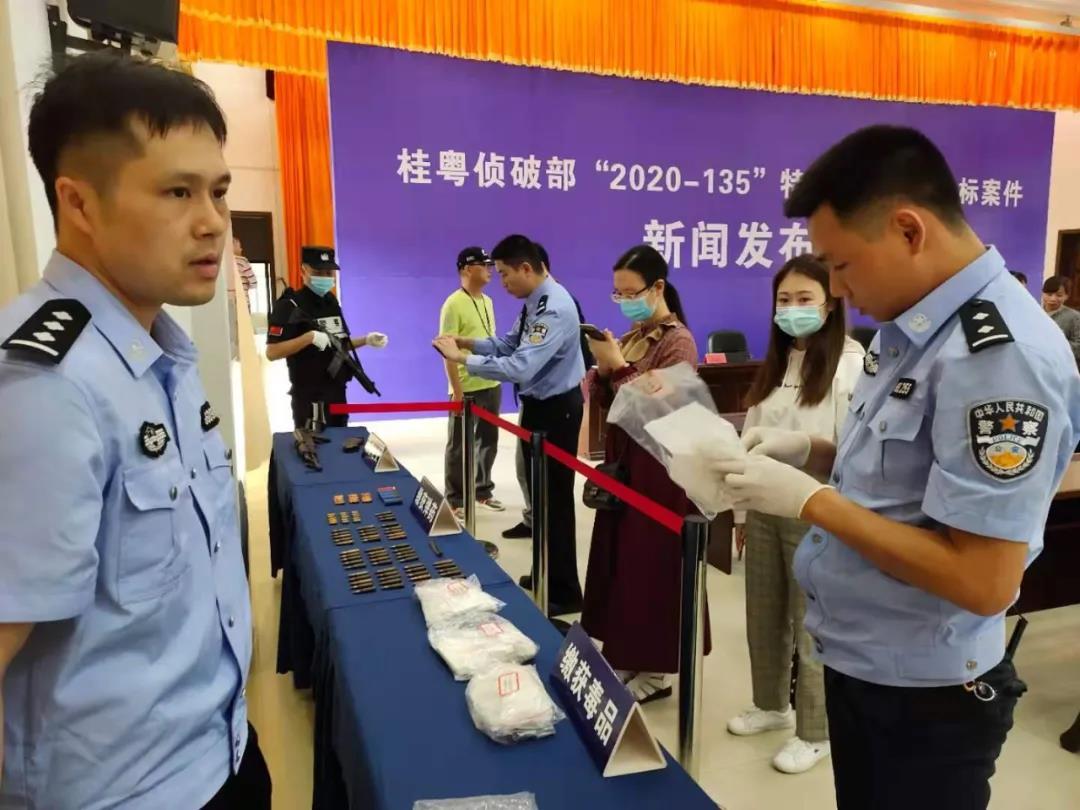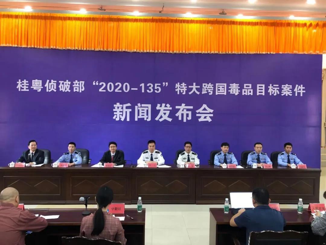 11月20日下午,广西壮族自治区公安厅禁毒总队在防城港市上思县举行新闻发布会,介绍广西广东两省公安携手破获公安部“2020-135”毒品目标案件的有关情况。