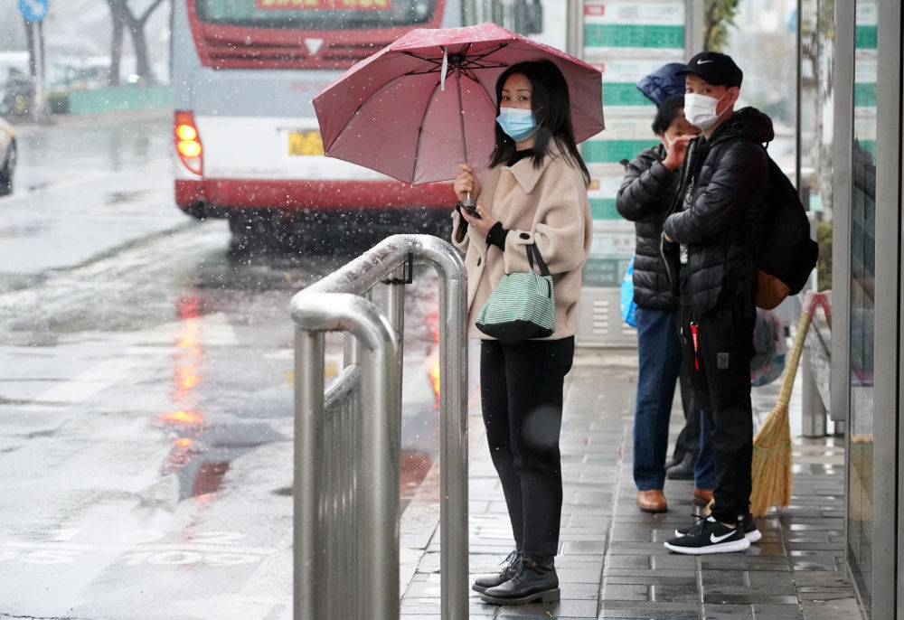 11月21日,市民在北京市宣武门内大街的公交站候车。新华社记者 任超 摄