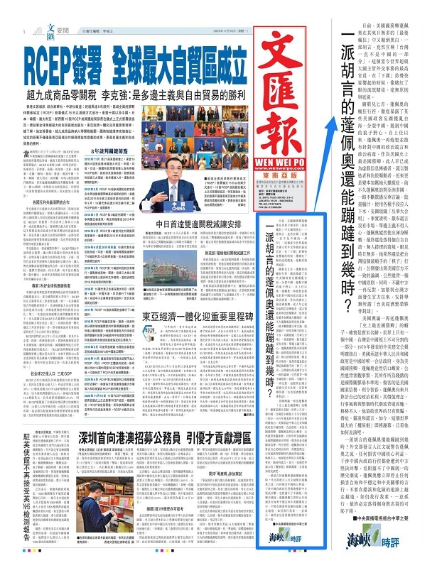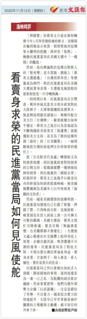 此外,香港《文汇报》、文汇网、大公网、澳亚网等港澳媒体对“总台海峡时评”系列文章进行了全文转载或摘要刊发。
