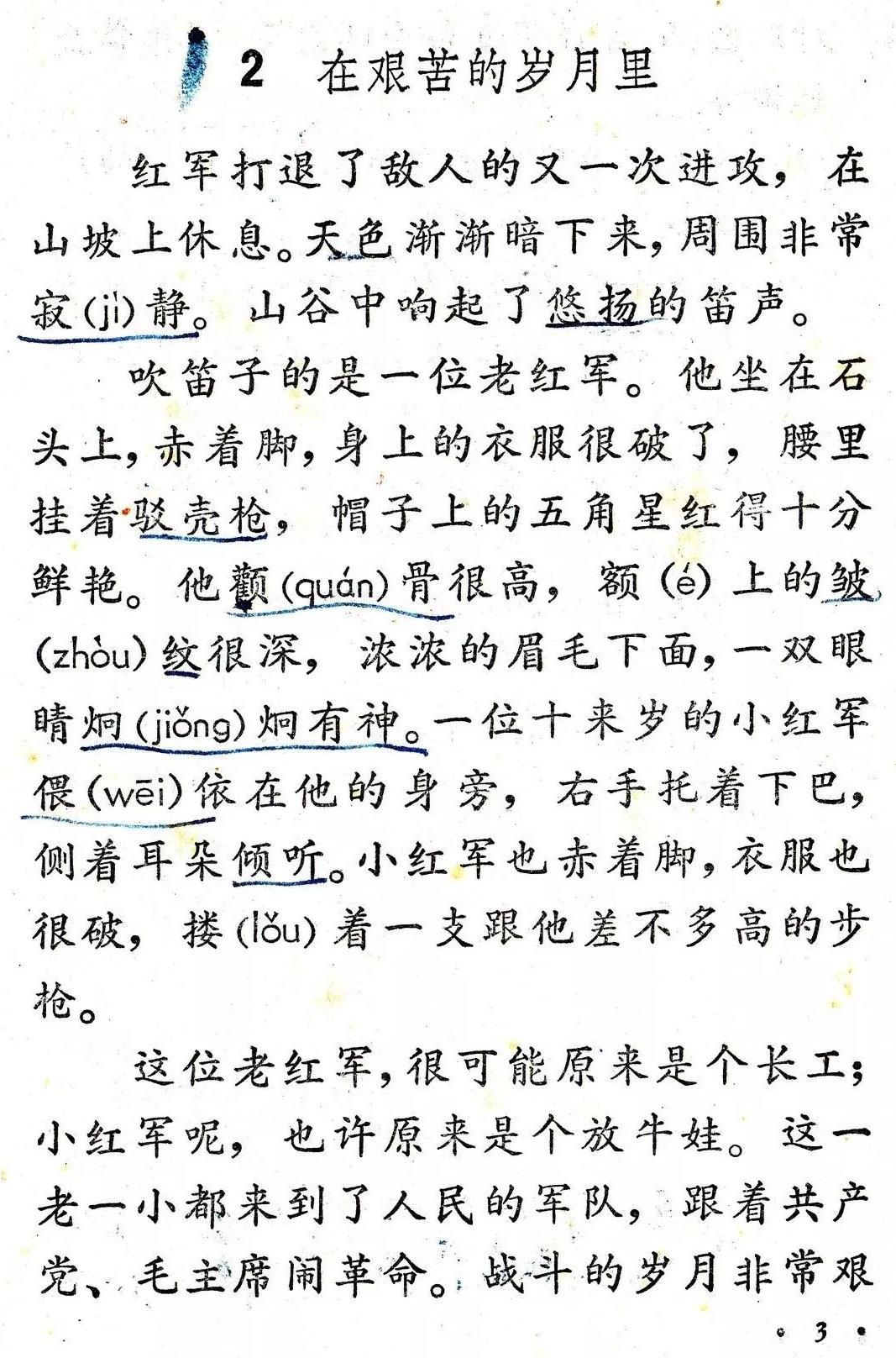 在人教1988年版的小学《语文》第6册课本中,一篇叫做《在艰苦的岁月里》的课文就取材于潘鹤的作品《艰苦岁月》,成功地通过老战士吹笛子、小战士依偎在身旁倾听的造型,体现出艰苦年代的革命乐观注意精神。表现了艰苦斗争环境中的红军战士信念坚定、开朗豁达的光辉形象。你还记得这篇课文吗?