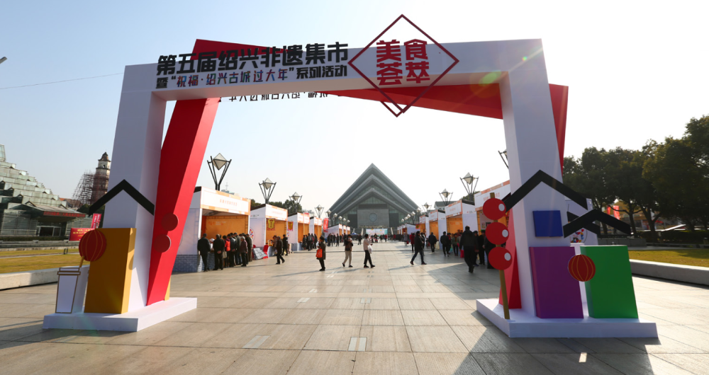 非遗嘉年华之外,绍兴另有一场大型非遗集市,年底在市中心的城市广场举行,为期3天,至今已举办5届。2019年,该活动共有88个项目参与,参展非遗传承人218人,客流量9.6万人次,现场交易金额46.9万元,意向销售额58.01万元。