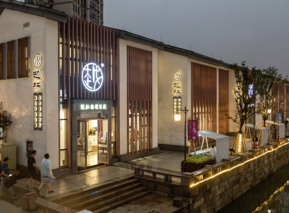 迎恩门风情水街,坐拥绍兴古城西城门和浙东古运河,是绍兴正着力打造的传统和时尚交融的人气商业街区,对标街区为成都的太古里。