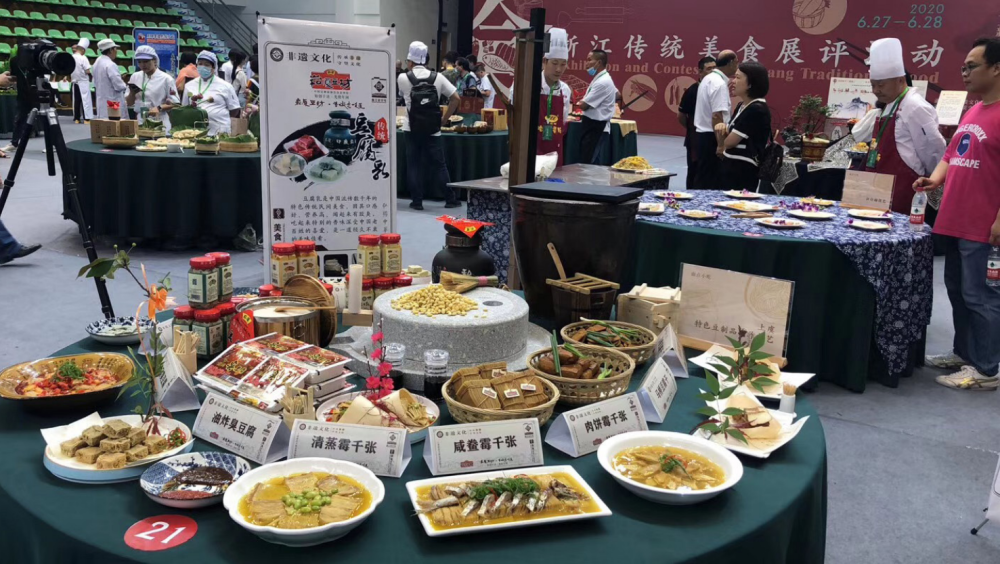 茶馆听书颇具市井味道,钟文江代表的非遗项目则更有烟火气——他是浙江老字号崧厦豆坊的老板,也是绍兴非遗“上虞特色豆制品制作技艺”的市级传承人,主打产品是“臭得够劲、香得过瘾”的臭豆腐,以及霉千张、腐乳、素鸡等豆制品。