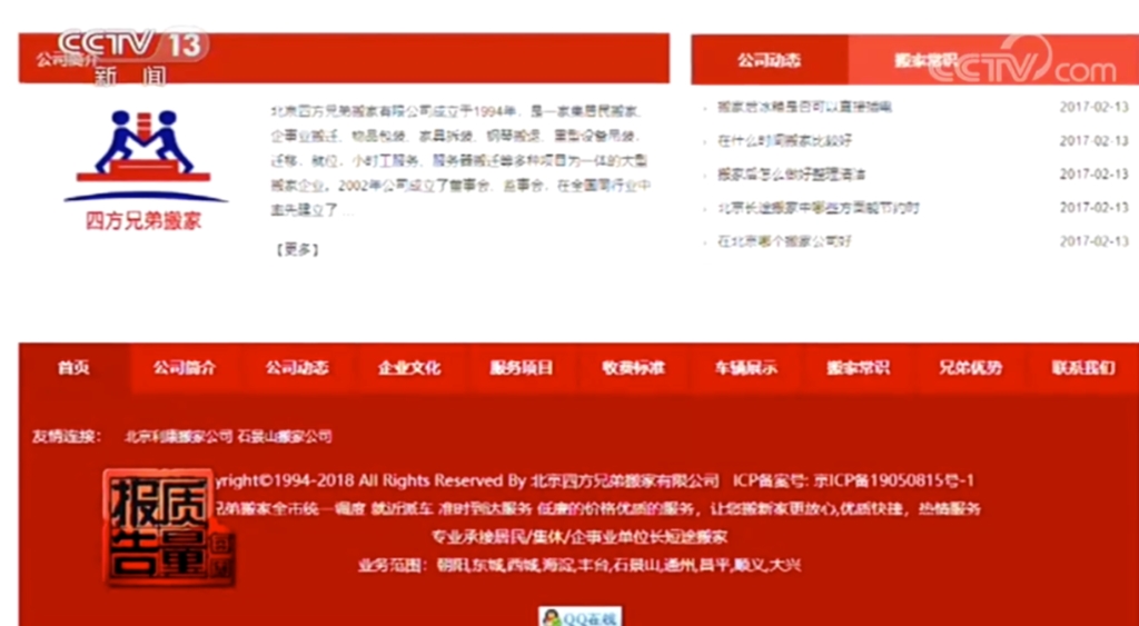 今年7月,吴女士准备搬家。她通过百度搜索了词条 “北京搬家公司哪家服务最好”,排名第一的是“北京四方兄弟搬家公司”。公司网站上显示,这是一家正规搬家公司。于是,她和客服取得联系。