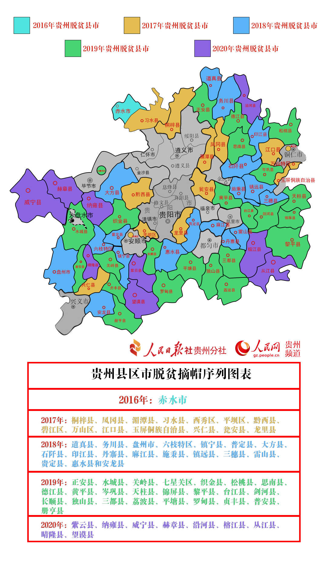 11月23日下午,贵州省政府新闻办召开发布会,宣布经省脱贫攻坚领导小组会议审定,紫云县、纳雍县、威宁县、赫章县、沿河县、榕江县、从江县、晴隆县、望谟县等9个县退出贫困县序列。至此,贵州全省66个贫困县全部实现脱贫摘帽。