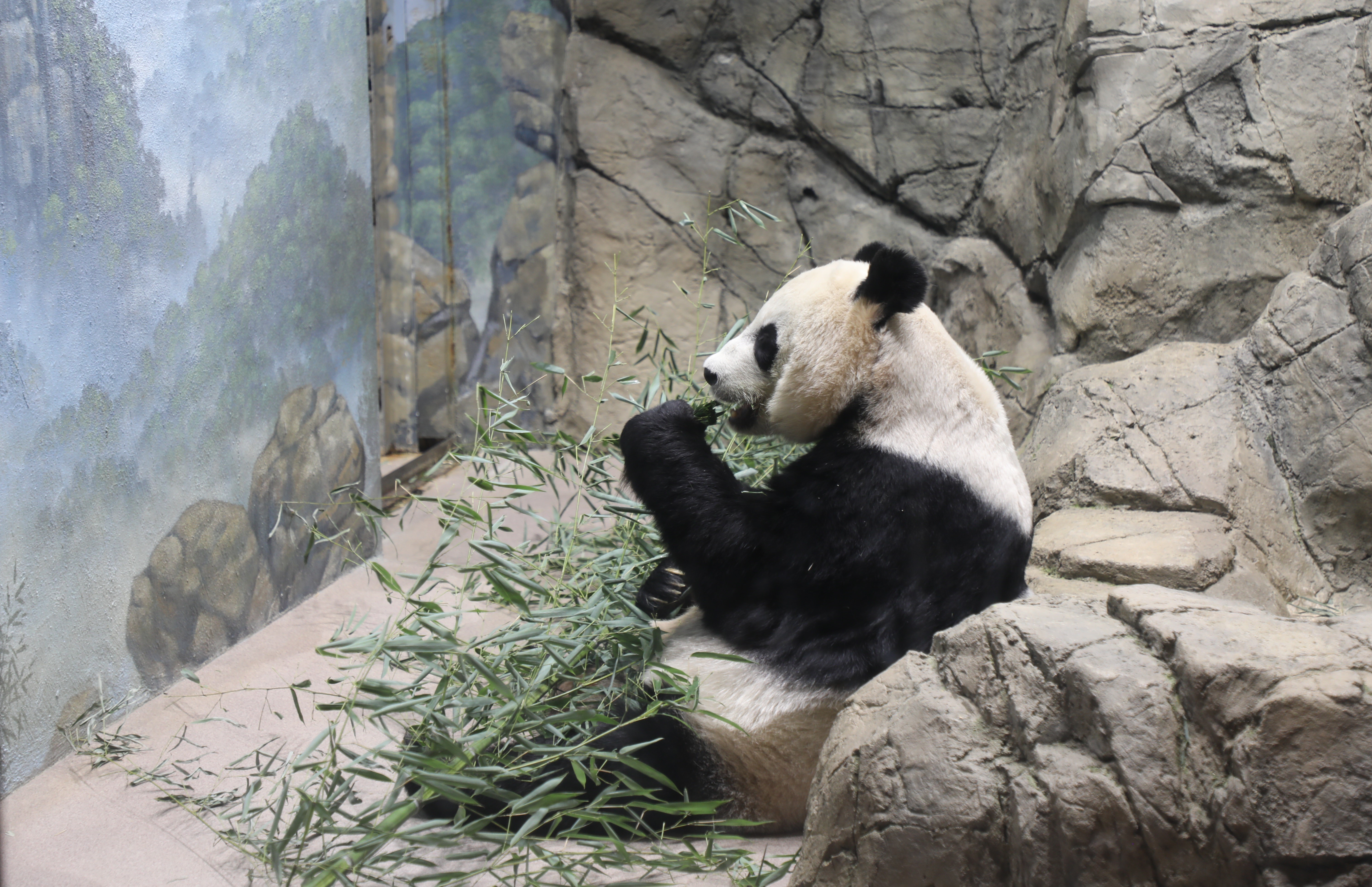 旅美大熊猫“美香”产后身体恢复良好,正在进食。 李志伟摄