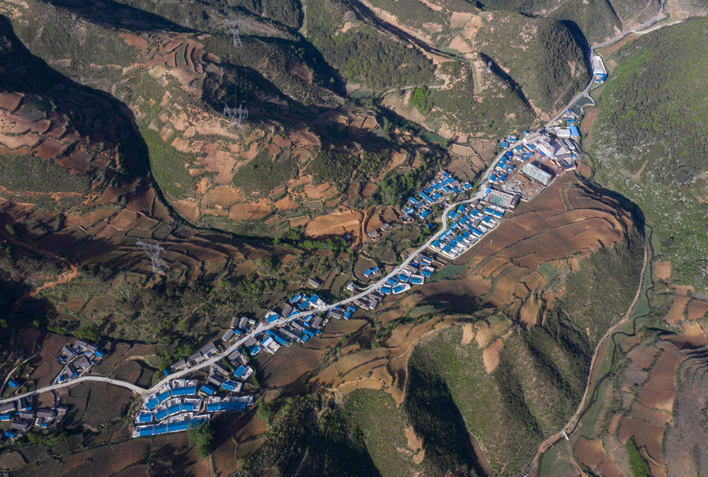 俯瞰群山中的四川省布拖县乌科乡洛呷村集中安置点,来源:新华社