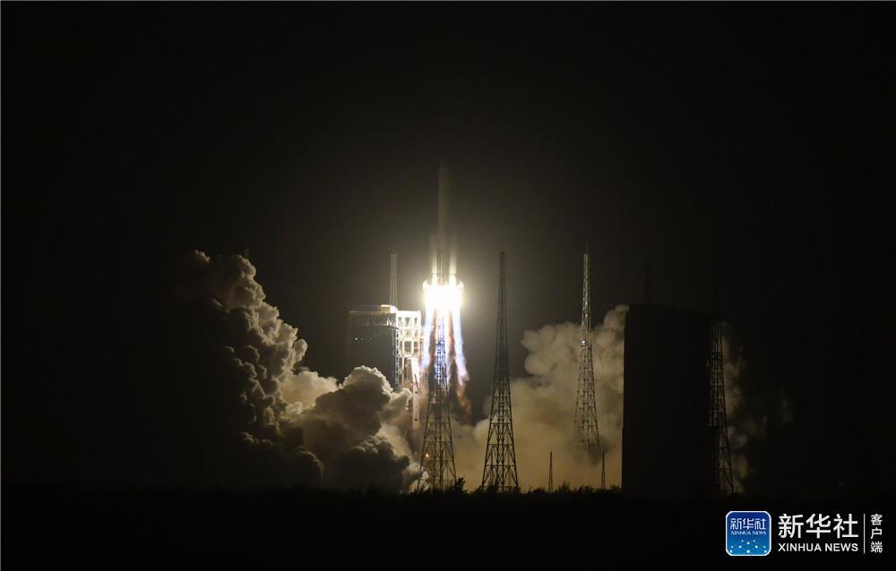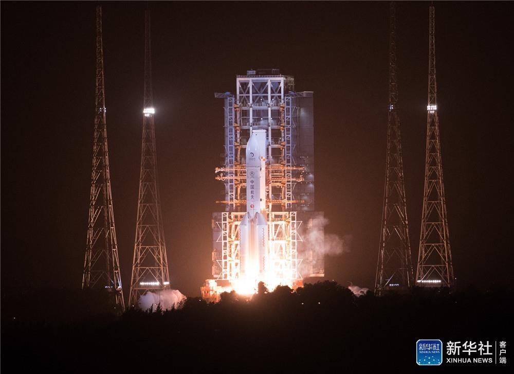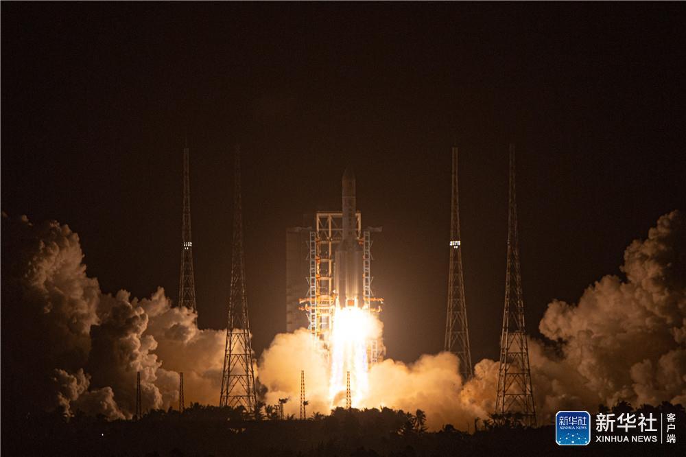 ↑这是长征五号遥五运载火箭发射升空。新华社记者 蒲晓旭 摄