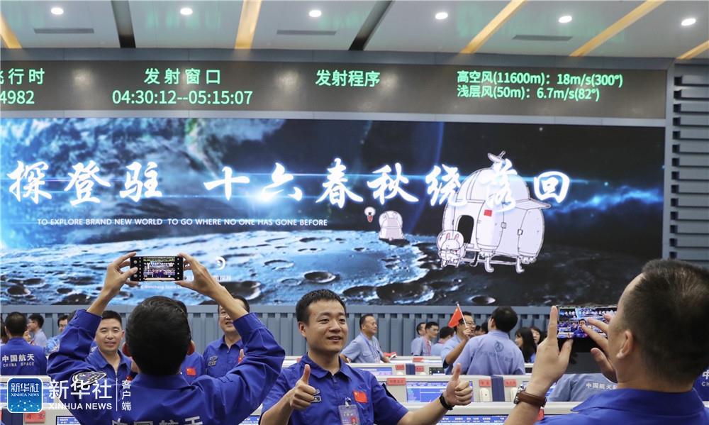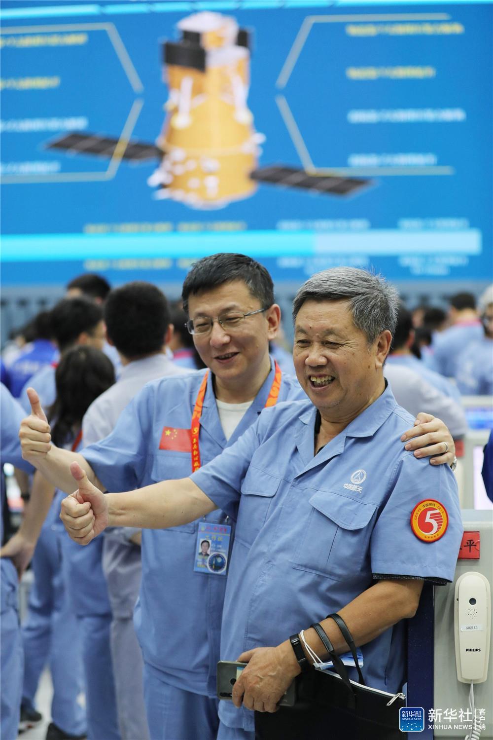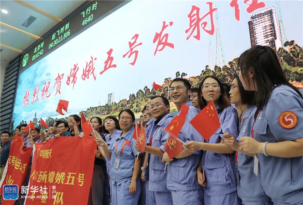 ↑这是航天科技人员在文昌航天发射场庆祝发射成功。新华社记者 金立旺 摄