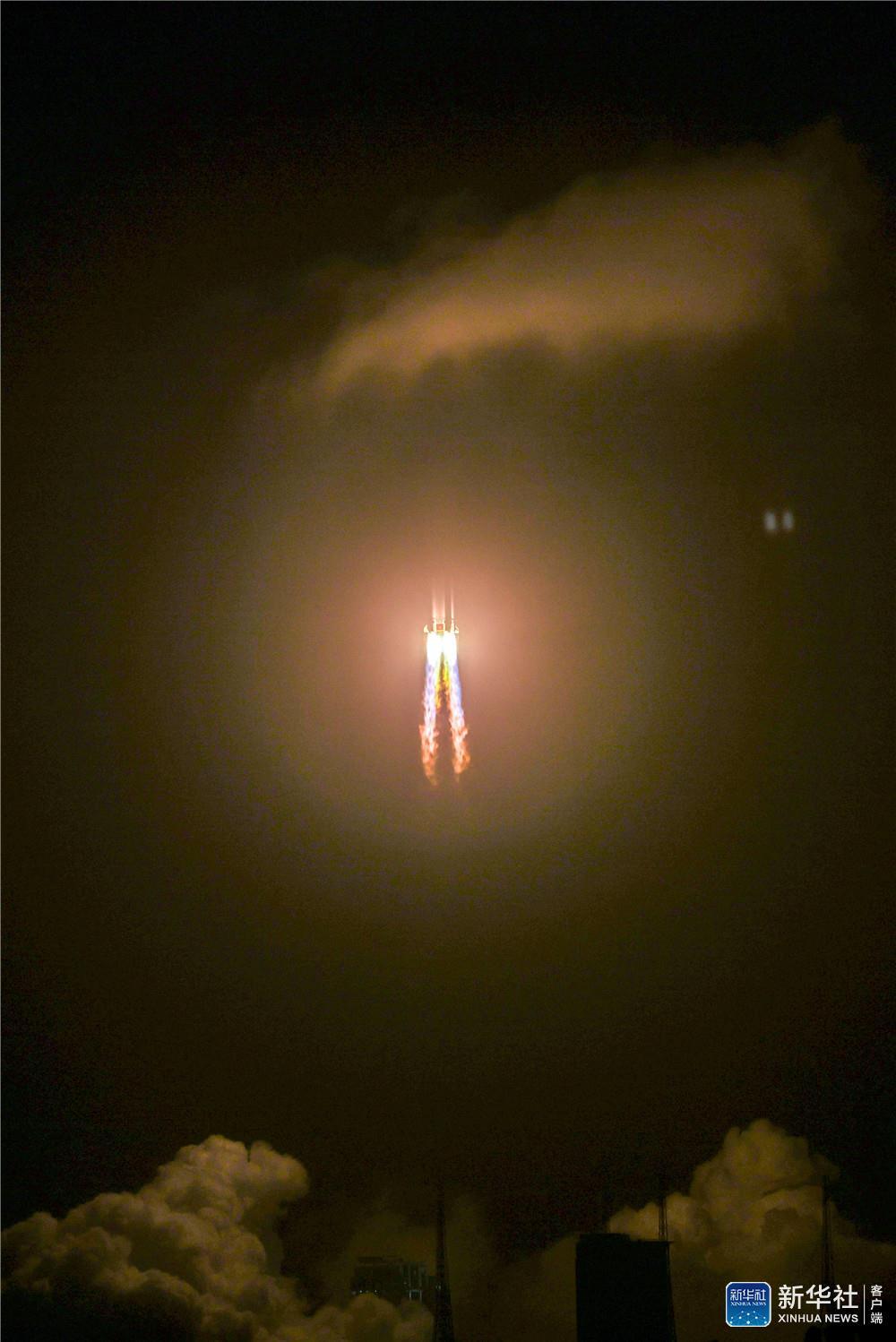 ↑11月24日4时30分,我国在中国文昌航天发射场,用长征五号遥五运载火箭成功发射探月工程嫦娥五号探测器,火箭飞行约2200秒后,顺利将探测器送入预定轨道,开启我国首次地外天体采样返回之旅。这是长征五号遥五运载火箭发射。新华社记者 金立旺 摄